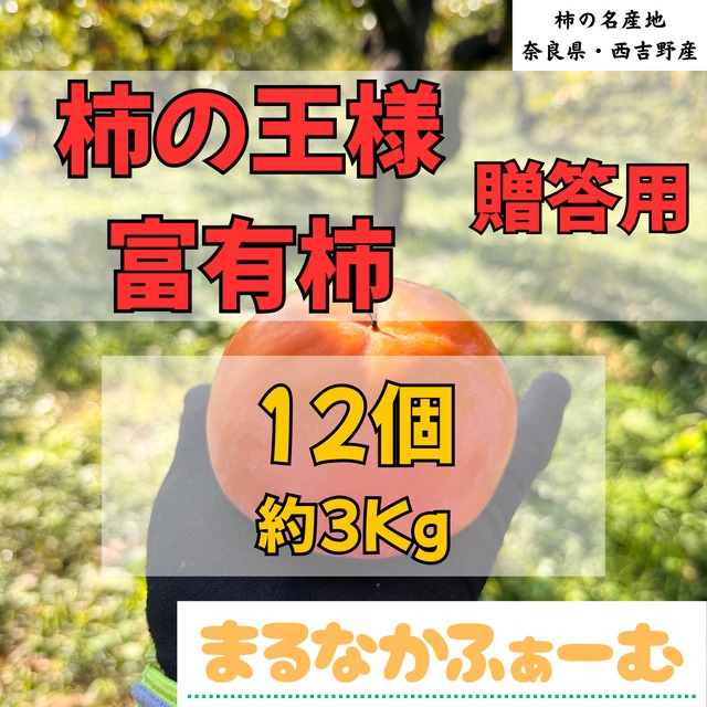 富有柿12個【贈答用】です。 高級柿の産地として有名な奈良県五條市西吉野で栽培した柿の王様と称される富有柿です。 多くの方に安心して食べて頂けるように減農薬栽培を行い、栽培農地内への除草剤も不使用です。害獣避けフェンス周辺など栽培農地外の草刈り困難な場所にのみ除草剤散布を行っています。肥料も化学肥料に頼りきるのではなく、土壌分析を行い必要な栄養素を有機質肥料で可能な限り賄うようにしています。 ☆☆下記注意事項のご確認をお願い致します☆☆ ●表面に白い粉状のものが付着している事もありますが、農薬などではなく、柿が自らの乾燥を防ぐために出しているブルームと呼ばれる物で害はありません。 ●直販もしていますので、売れ行きによっては予告なく販売終了させて頂く場合もありますのでご了承ください。 ●保存方法:直射日光を避けて冷暗所にて保存してください。 ●発送前に検品は十分に行なっていますが、生果物なので輸送中に傷んだり、追熟してしまう可能性もあります。特に北海道や沖縄、離島は到着まで日数がかかりますのでご注意ください。生果物である事をご理解ください。生果物ですので、発送後の返品、返金は致しかねます。ご購入前に必ずご確認ください。 #柿 #富有柿 #奈良県産 #西吉野産 #まるなかふぁーむ
