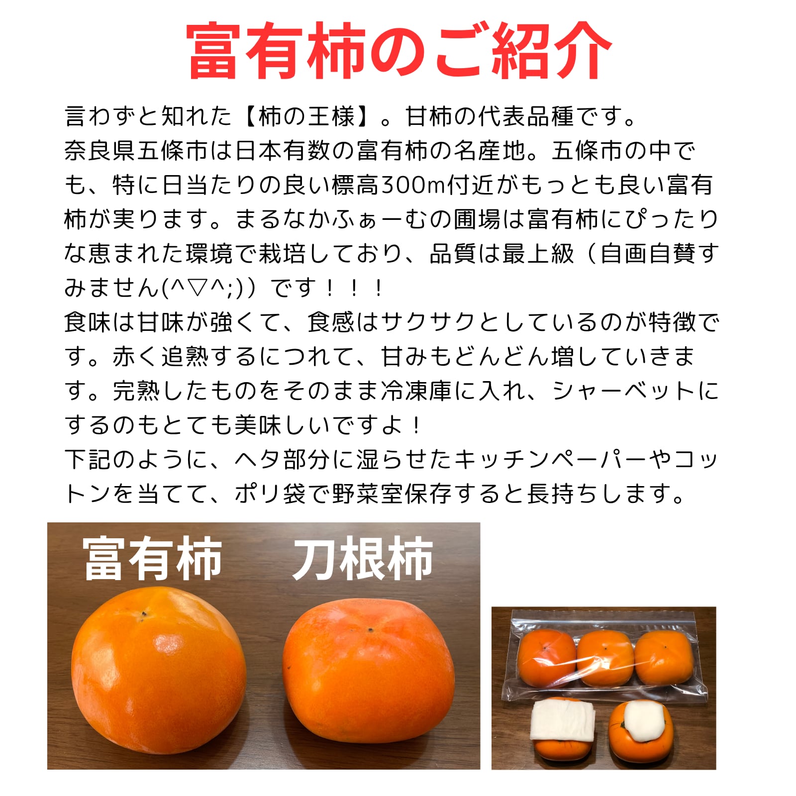 高級柿の産地として有名な奈良県五條市西吉野で栽培した柿の王様と称される富有柿です。